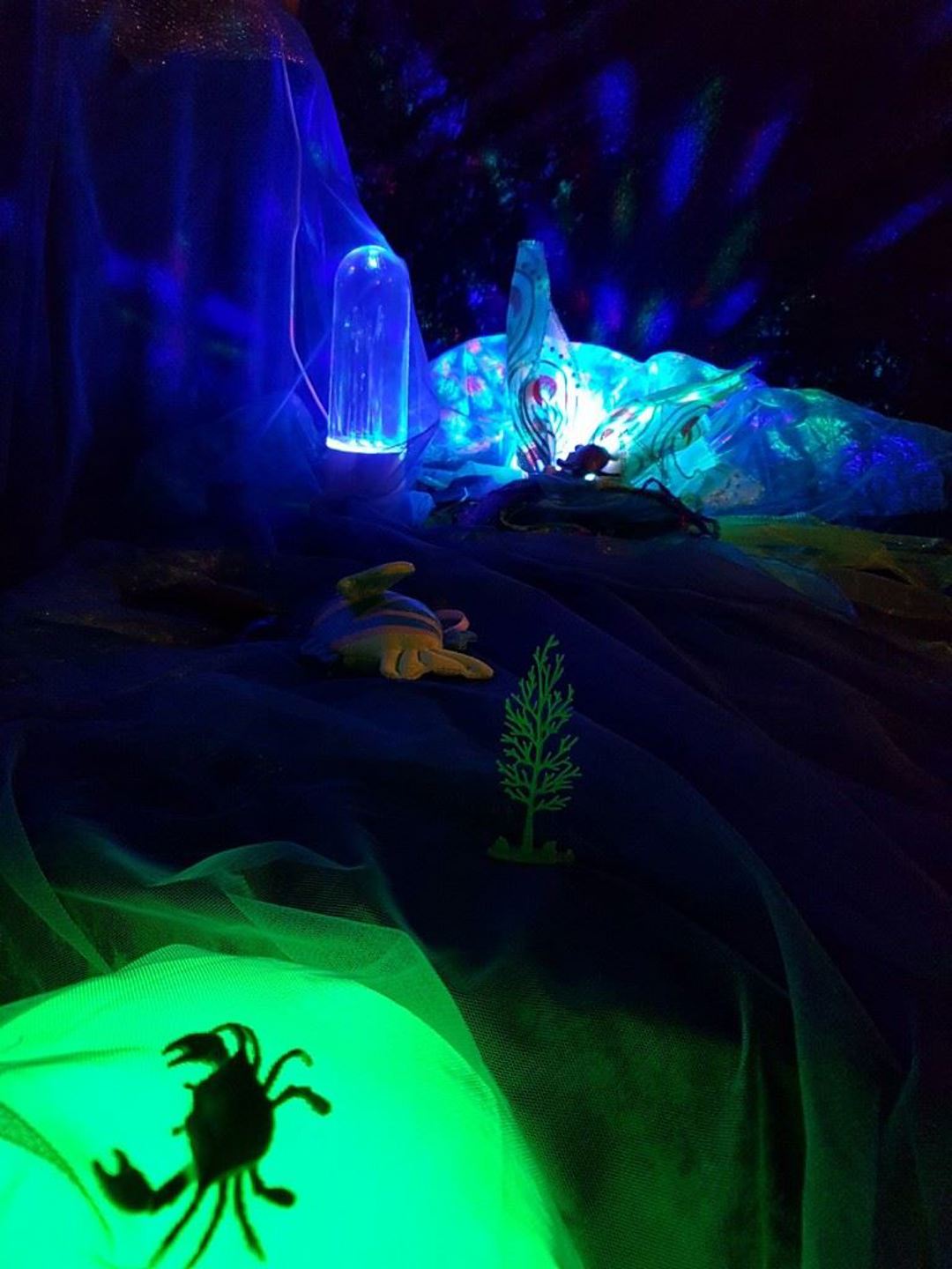 Mariann og Catrine har hatt en magisk samlingstund med musikk og masse undring. Barna var medvirkende med innspill og Mariann var Havets dronningkonge og fikk hjelp av ett og ett barn til å trekke (fra en magisk eske) opp forskjellige fisk, skjell m.m som hørte til i havet. Barna fikk vise og fortelle om hva de fant til de andre. Deretter ble de plassert i havet der de selv mente de skulle bo/leve. Målet med denne samlingen er å lære om hva som bor i havet, skape undring, nysgjerrighet og at det skjer noe magisk. Behagelig musikk ble spilt i bakgrunnen og forskjellige lyskilder lager en rolig og fin stemning. Barna fikk også tegne og skal lage til en innvitasjon til Bamsebu barnehage. Vi har invitert dem med til forestilling med " Eskilbalanse" og hans medspiller. De skal opptre for oss i Vardeneset kirke 1. april. Forestillingen heter Plasten og havet. Vi gleder oss. Tema som Tøys og tull har i prosjekt nå, bygger videre opp med tur til byen, fiskekummene, forsøpling m.m.